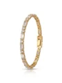La Pulsera Tennis Zirconia Enchape 18K presenta un diseño elegante con una fila continua de zirconias brillantes de corte geométrico que aportan un estilo sofisticado y atemporal. Está elaborada en stainless steel 304 con enchape en oro 18K mediante recubrimiento PVD, lo que proporciona resistencia al desgaste, al agua y al deslustre. Este tipo de recubrimiento aplica una fina capa de oro sobre el acero inoxidable, normalmente con espesores cercanos a 0,03 µm, lo que permite mantener el brillo y la durabilidad en joyería de uso diario.